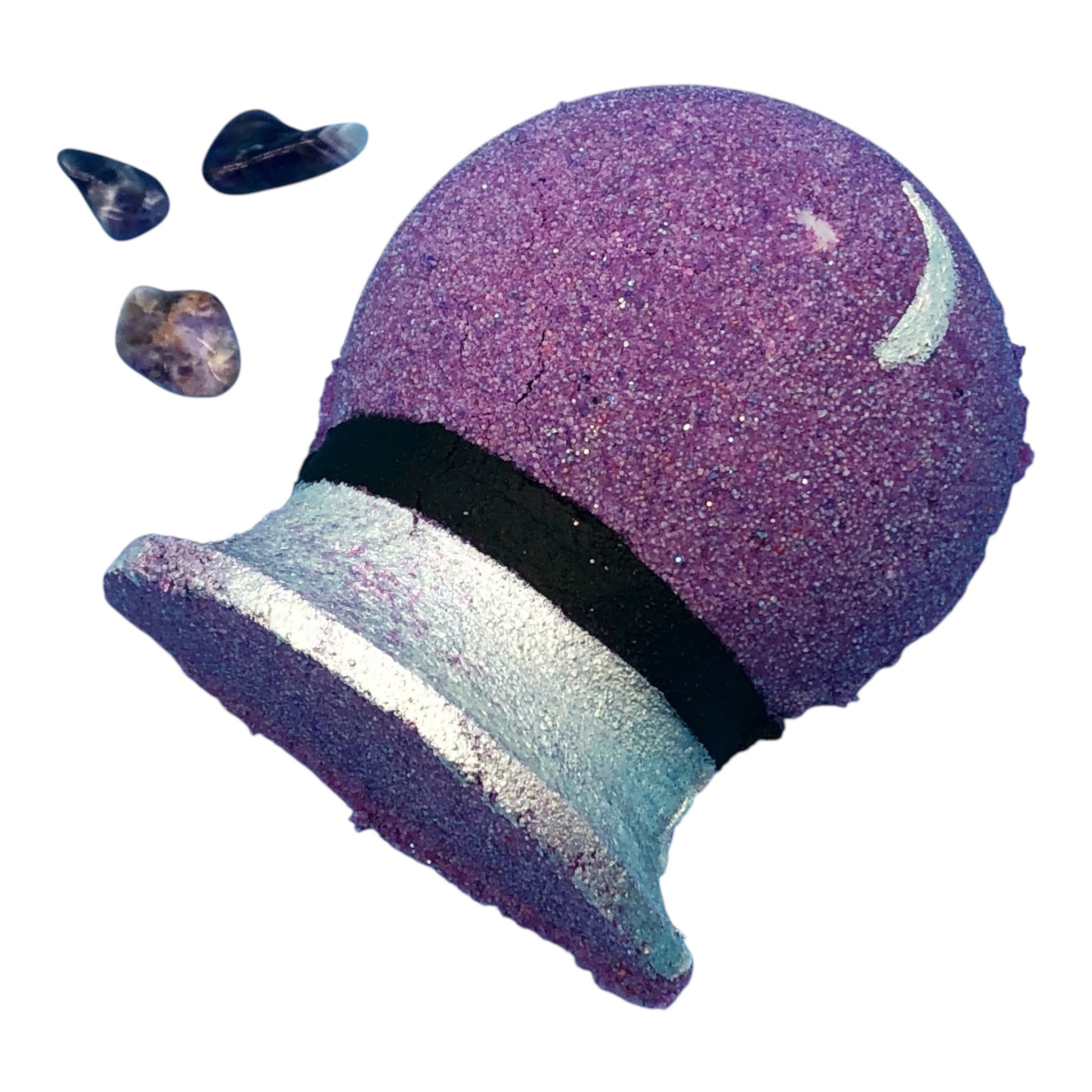 Step into a bath filled with mystery and enchantment. Shaped like a glowing crystal ball, this luxurious bath bomb releases mesmerizing fizz and swirls of shimmering color as it dissolves. Let the dreamy aroma of vanilla’s warm sweetness mingle with the delicate, floral whisper of wisteria, creating a relaxing yet otherworldly atmosphere.
